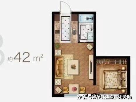 B 户型:42㎡一室一厅,总价 48-53 万
