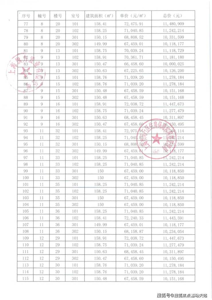 一房一价表