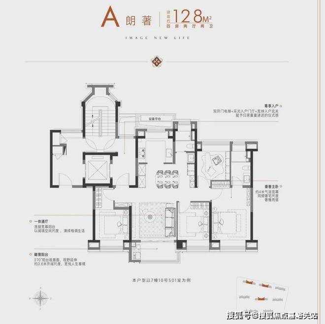 同时,项目还有建筑面积约128㎡的奢阔四房: