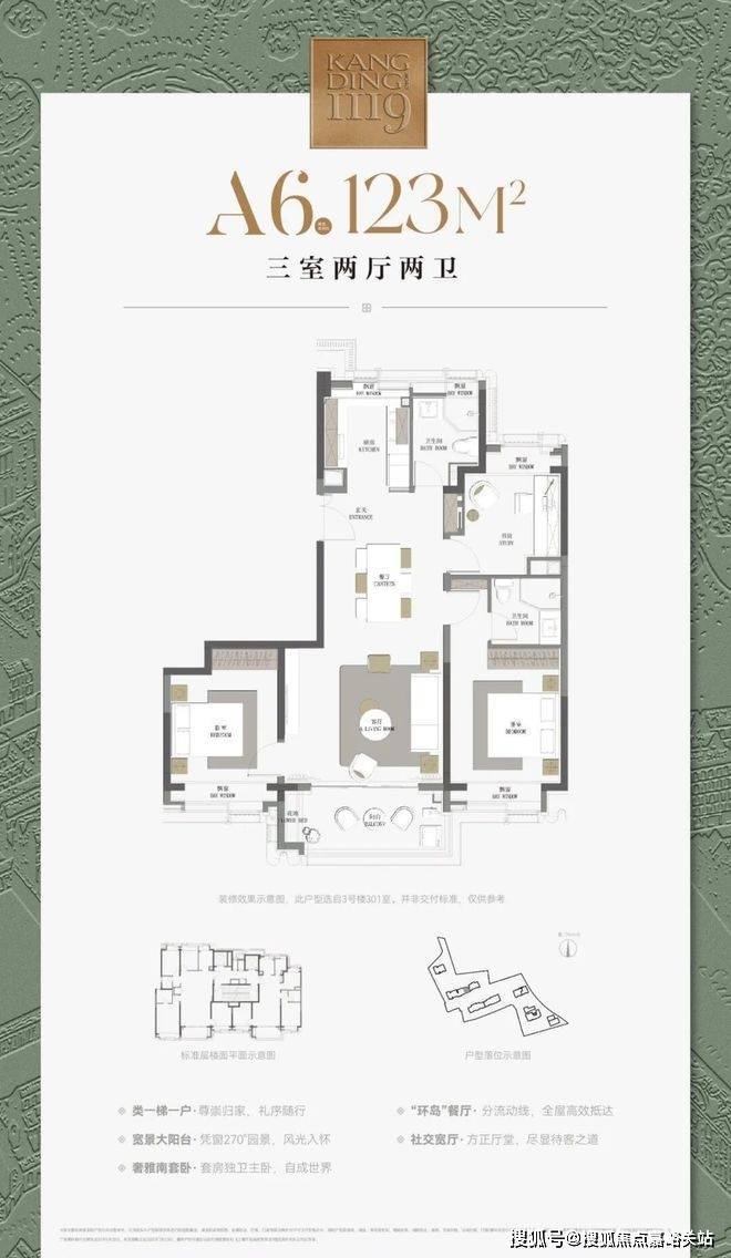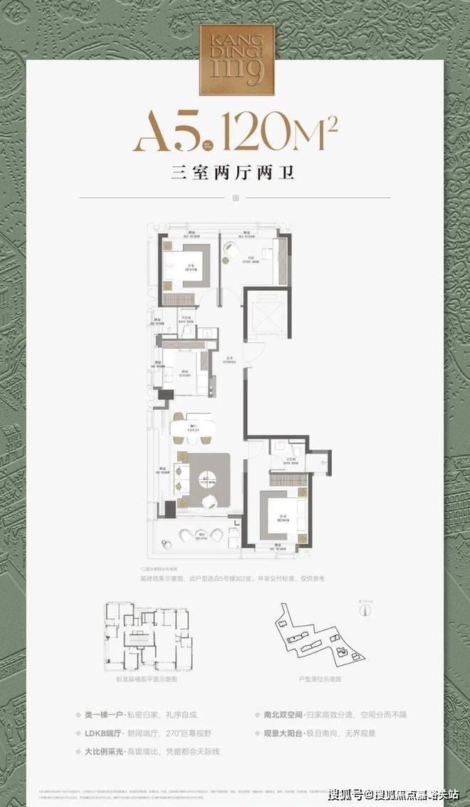 建面约120㎡3房2厅2卫▼