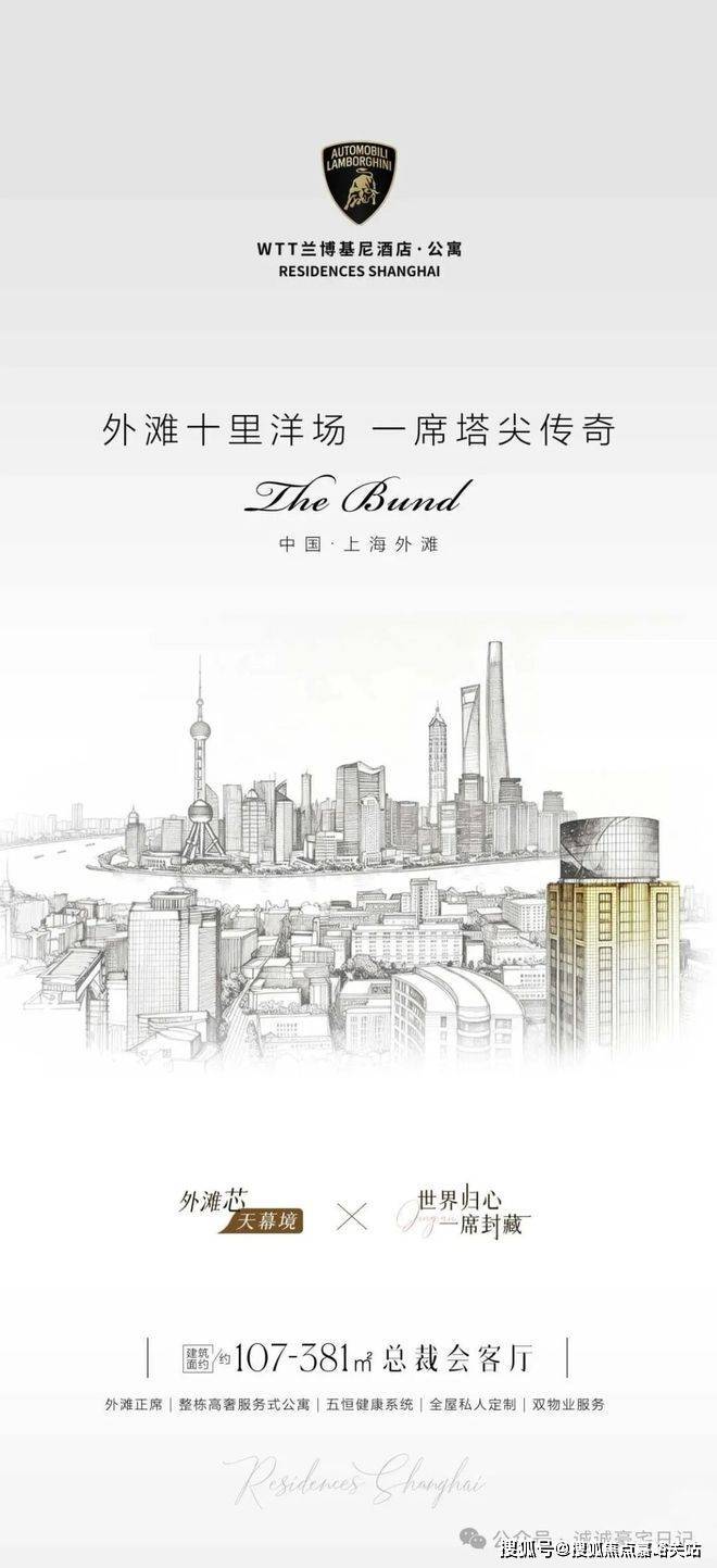 配套:规划私宴、健身房、泳池、屋顶花园等多维度配套,打造圈层私属会客厅; 〔物业服务〕:上海城市物业×WTT兰博基尼酒店双物业,业主专享定制私人管家服务。