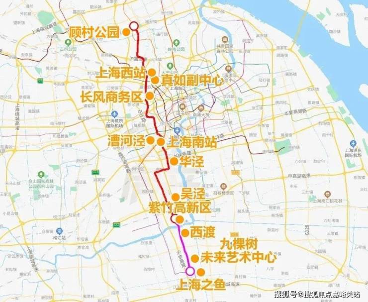 终点望园路站离奉贤著名风景区、上海第3大人工湖“上海之鱼”直线距离1公里都不到,此处还能与5号线、在建南枫线实现交汇换乘,是未来的上海南部大型枢纽。