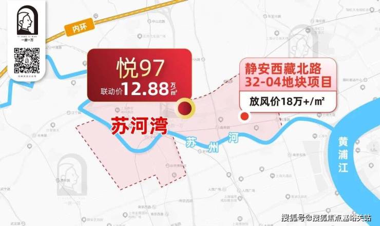 板块内静安西藏北路32-04地块项目也在其中,是整个苏河湾核心区域中最后的待开发地块,周边项目在豪宅榜单上依然有名,未来预计售价高达18万+。