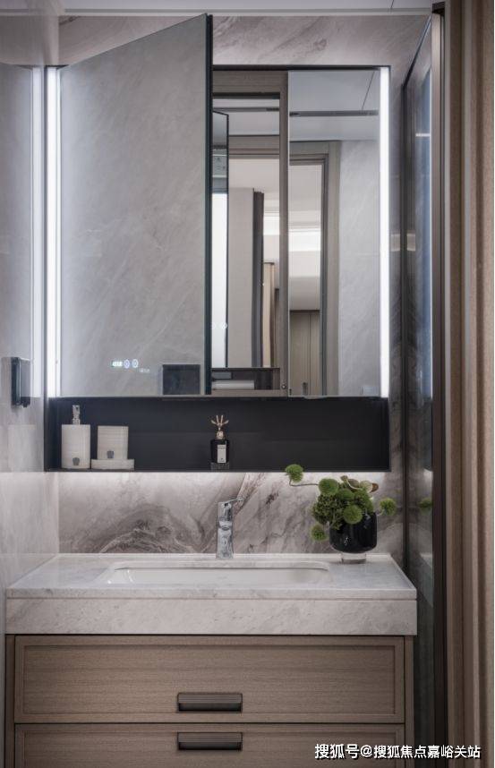 背后主墙面采用岩板设计,经久耐用,内部还收纳细节还预留4孔电源,电动牙刷、卷发棒等吹风机收纳孔、洗脸巾抽取孔。越秀杨浦天玥售楼处电话4008569058☑️☑️