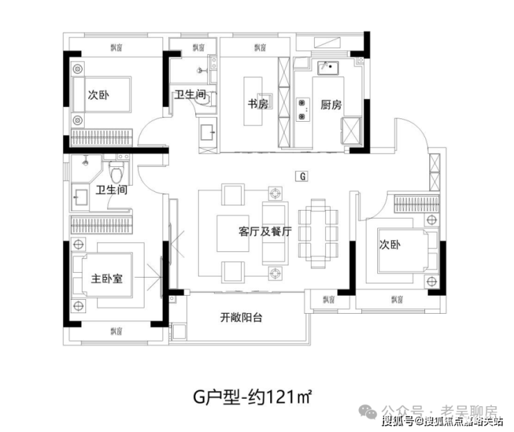 建面约121㎡ 4房2厅2卫,宽境4房,拓宽空间尺度;大开间、进深短,通透采光;主卧独立卫浴,优雅随心的寝居感受。