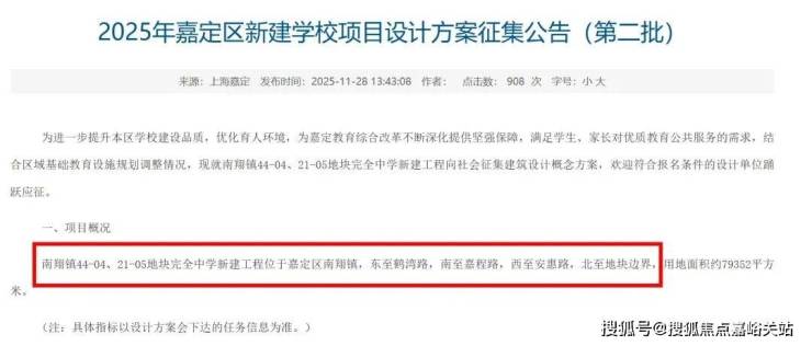 而就在11月28日,嘉定教育局官网出现了一批新建学校项目设计方案征集公告,其中紧邻时代之城西侧的44-04和21-05地块引发高度关注。