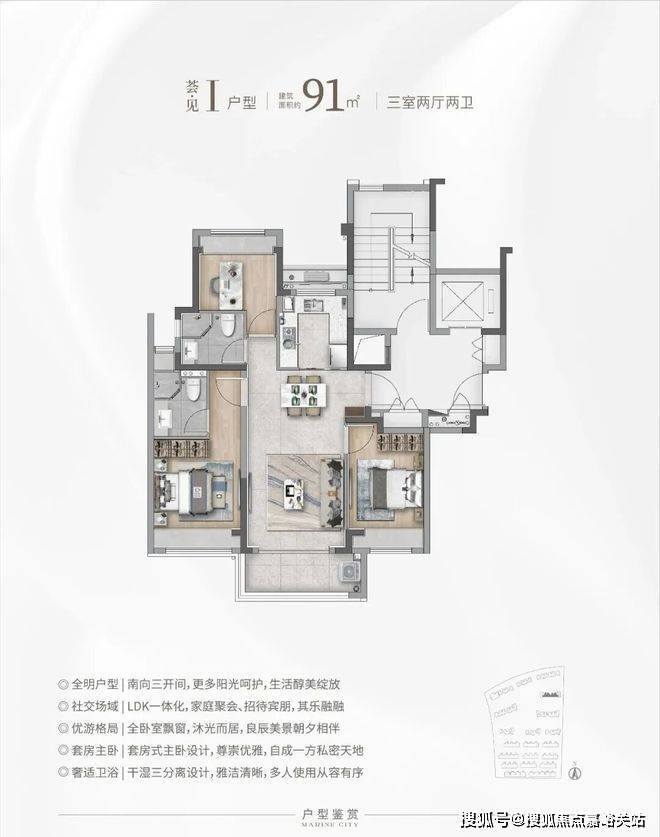 高层建面约91㎡3房2厅2卫