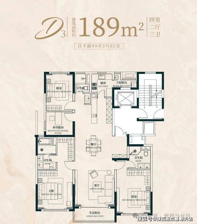 建面约 197㎡ 4 房 2 厅 3 卫:双套房设计,打造 “家庭平权” 传世大宅