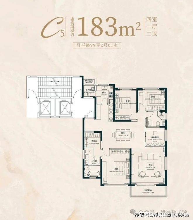 建面约 183㎡ 4 房 2 厅 2 卫:5.9 米南向主卧开间,豪宅罕见尺度