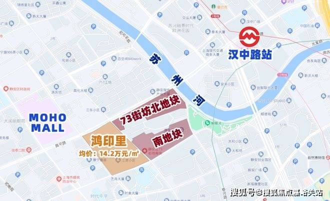 静安73街坊项目位于老静安苏州河以南,项目西侧就是鸿印里,往东就是苏州河。去年1月,鸿印里开盘推出333套房源,均价14.2万/m²,认购人数破千,入围分81.4分,开盘当天毫无悬念售罄!