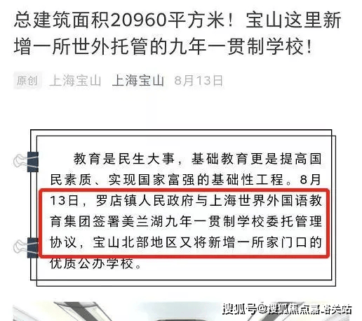 去年8月,宝山罗店镇人民政府与 世外教育集团 ,签署了美兰湖九年一贯制学校委托管理协议。