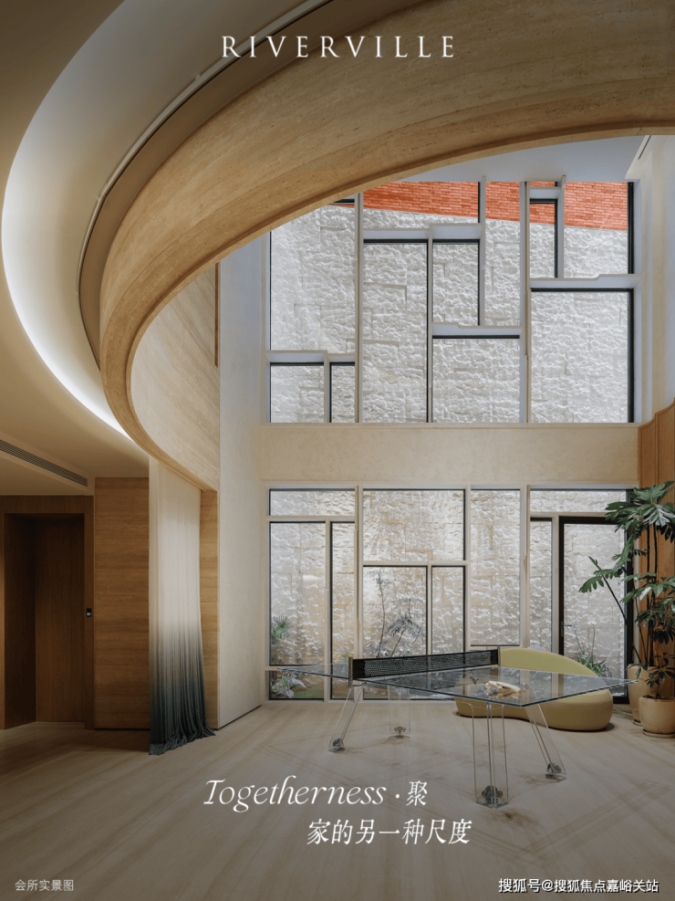 无界空间:客厅270度转角无柱设计,搭配落地玻璃,开阔视野将院中风景迎入日常