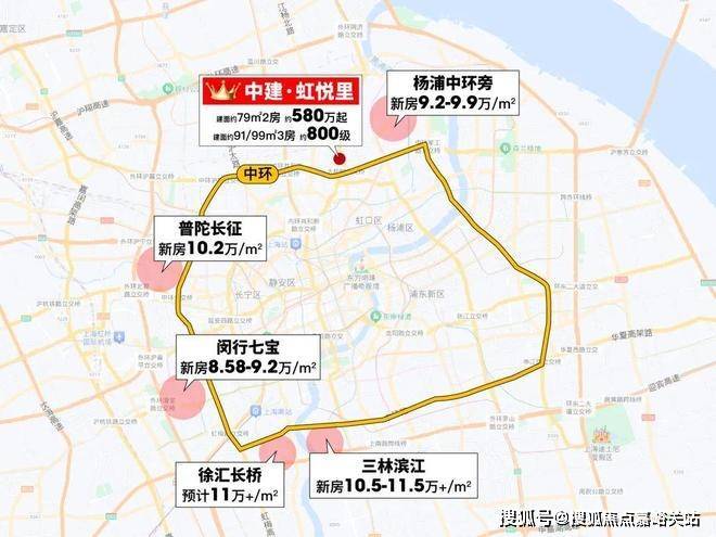 同环线普陀长征新房均价10.2万/㎡;闵行七宝也已8.58-9.2万/㎡。
