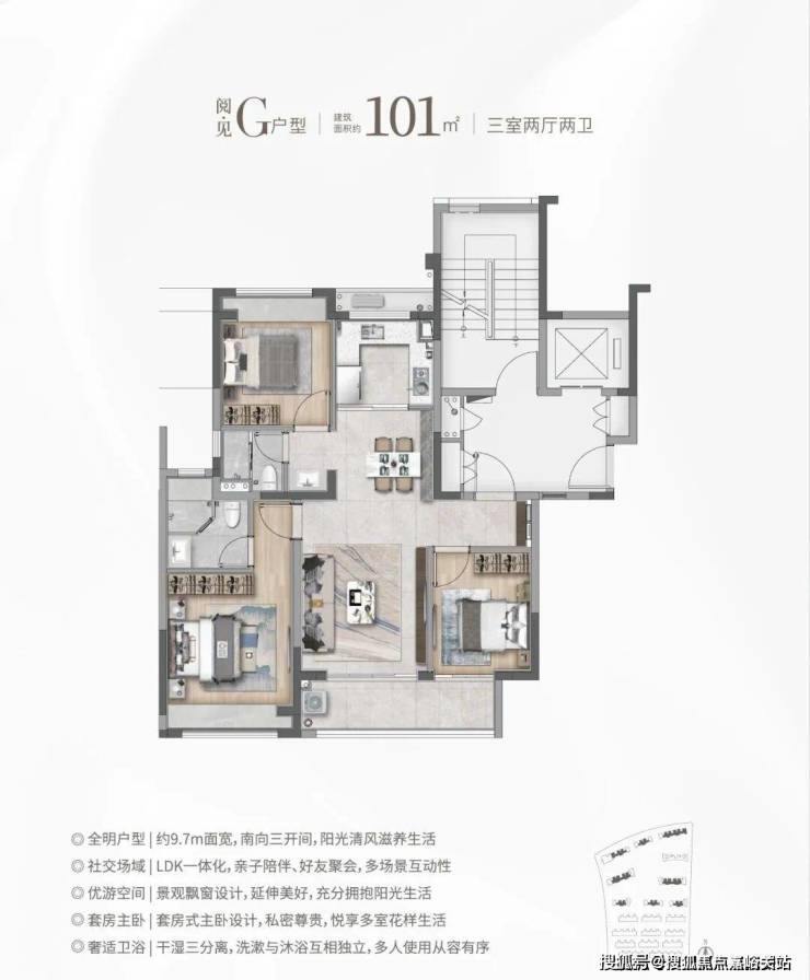 ②建面约101㎡G户型:尺度更阔绰的进阶品质之选!