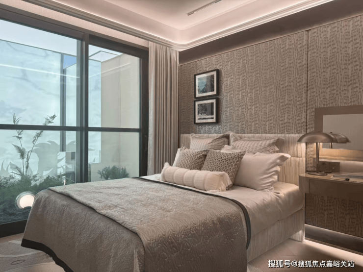 南、北、西三面除承重墙外均采用全玻璃幕墙设计,最大化引入自然采光与通风,站在室内即可感受无遮挡的开阔视野。南北两间卧室 配备270°全景天窗,搭配南向双阳台,让奢居属性进一步强化;
