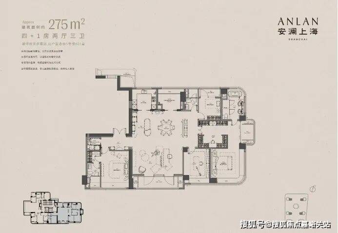 安澜上海推出建面约192-365m²户型,以极致的面宽,和首个实现三面环幕采光全景舱创造出极致通透与纯粹的居住体验。