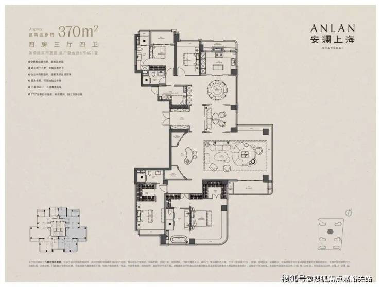 以下为建面约370㎡户型过程稿亮点: