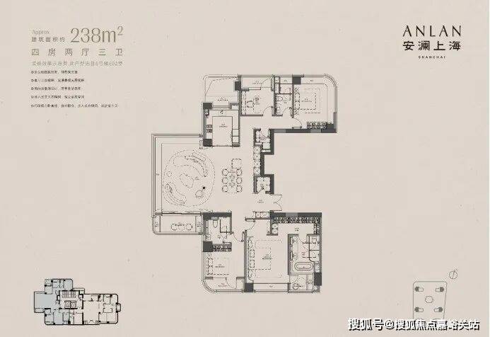 环幕全景舱238户型 ,三面采光的环幕全景舱空间,以框架剪力墙结构打破传统空间的视觉阻隔,极大程度上引入阳光与风景,带来纯粹通透的空间感官。同时新规之下带来阳台、飘窗等更多可拓展空间,满足多元场景下的空间生活需要,实现超高的空间实用率和居住品质感提升。 安澜上海售楼处电话:400-8894-986VIP极速热线✅️✅️