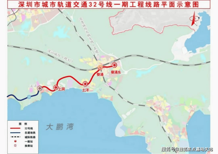 值得注意的是,在深惠城际大鹏支线葵涌站可实现换乘的地铁32号线一期工程也传来新进展,首座车站上洞站主体结构顺利封顶。
