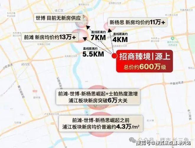 由于前滩-世博-新杨思的崛起,浦江镇在今年年初拍出了一块溢价率约18.97%的宅地,如今的售价高达约6万/㎡+。