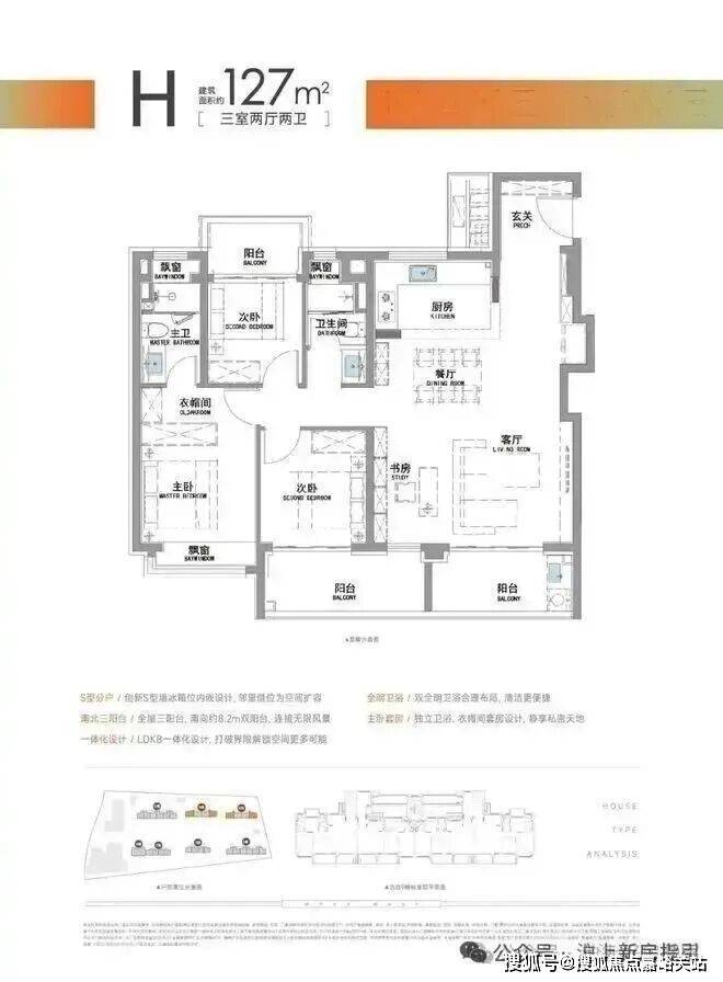 建面约127㎡三房两厅两卫,该户型最大的亮点是有着比肩豪宅的南北三阳台黄金布局,这是2025年之后,松江首个三阳台户型。招商时代潮派售楼处电话4008569058☑️☑️