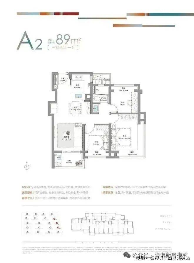 建面约89㎡3房户型:东边套主卧配置约270°双向采光飘窗、S墙设计,主力总价仅约450万级,首付约90万起!招商时代潮派售楼处电话4008569058☑️☑️