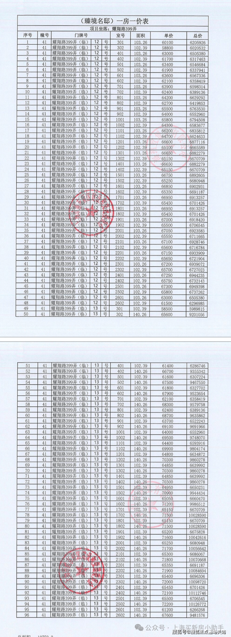 一房一价表