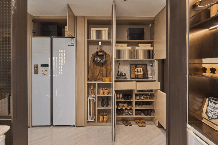 从 5大收纳区的镂空玄关柜 ,到分类更细致的卫浴空间,再到 厨房的5大分区 ,以及更惊喜的 餐边柜,划分6大功能区 ,全屋收纳量飙升!