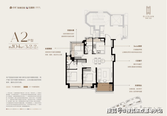 相比于104m²户型,这个106m²的边套户型差异主要在于多了270°的转角飘窗+主卫三段式+S墙分户设计+北侧无连廊,居住的舒适度有一定的提升,所以均价略高于中间套。
