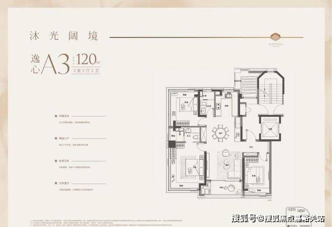 功能优势:动静分区合理,主卧套房设计,私密性较好。适合改善型家庭,兼顾实用与舒适。