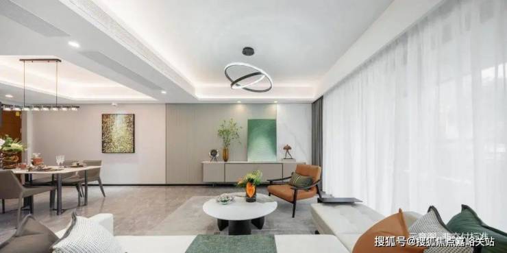 厨房+餐厅+客厅+大面积观景阳台一体化,提升整个空间利用率。