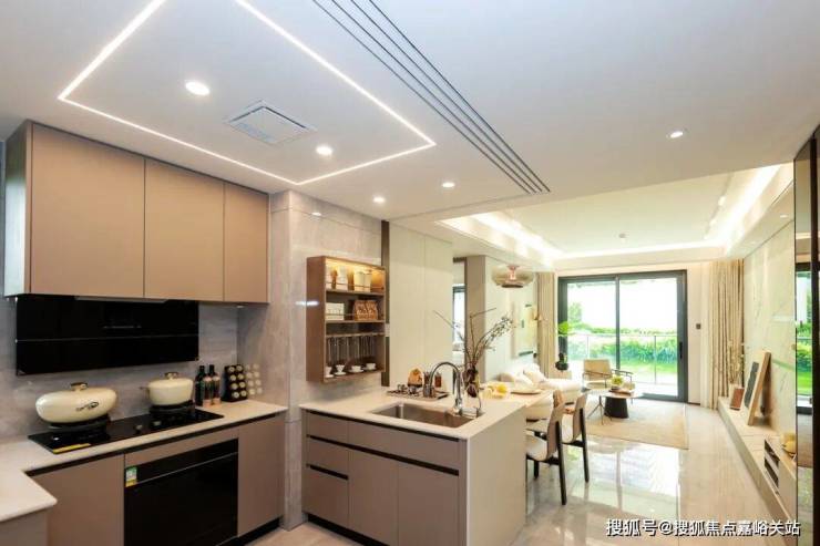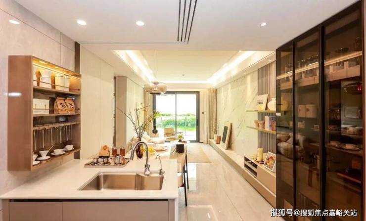 半开放式厨房,打破了传统的全封闭设计,与餐厅无界相通,面朝客厅与阳台,形成S型流畅生活动线,也打破了居家生活的空间隔阂,无形之间,增强家人之间在日常时刻的交流与互动。