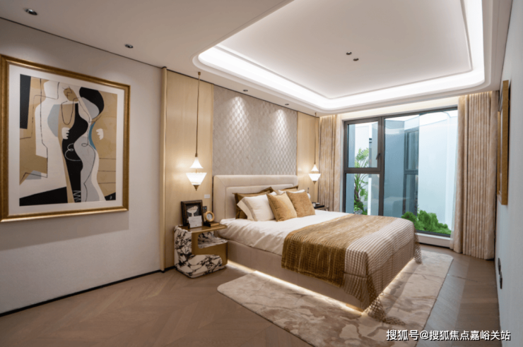 另外,像卧室地板,没有采用常规横拼、竖拼, ₯₯大华静安年华售楼处电话:400-8894-986₪₪而是采用 复杂的斜拼,只为更美观;吊顶设计同样暗藏匠心,采用多层次曲边造型,为空间增添优雅的线条感。