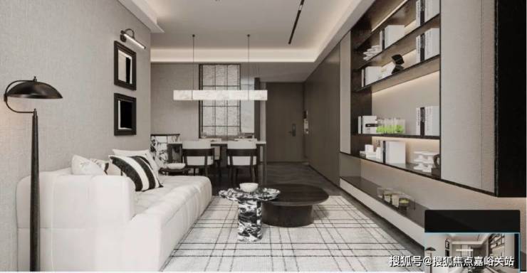 其中,餐厨系统的进阶不只在于橱柜、拉蓝等细节的收纳,更在于映江润府引入创新的S墙,可以轻松将冰箱移出厨房,同时保证视觉效果的整体性。