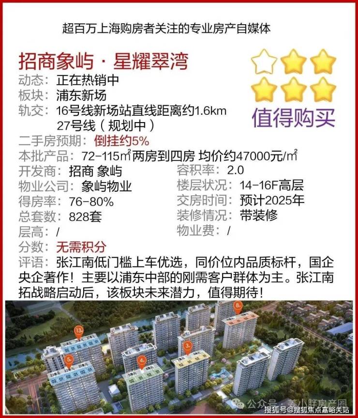 招商象屿·星耀翠湾位于浦东新场板块,丝庐雅苑二期东侧,项目总占地面积约3.96万方,总建筑面积约11万方,容积率2.0,由13栋14-16F商品住宅、1栋16F保障房以及若干配套用房组成!