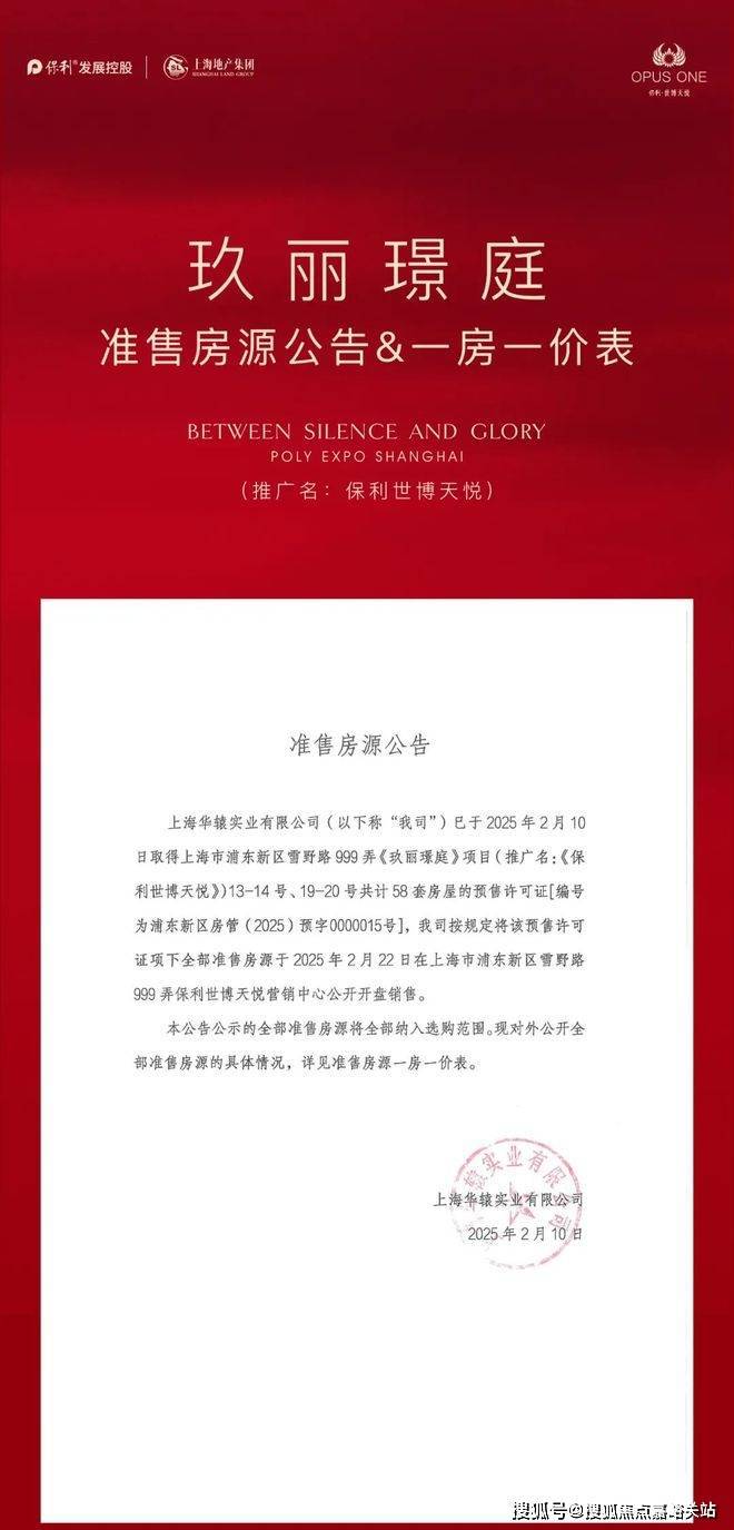 1、项目推广名为“保利·世博天悦”,地名核准名/备案名为“玖丽璟庭”,开发公司为:“上海华辕实业有限公司”;预售证号:浦东新区房管(2025)预字0000015号;2、本资料为要约邀请,不作为要约或承诺;3、相关宣传内容不排除因政府相关规划、规定及出卖人分期规划、未能控制等原因而发生变化;4、买卖双方的权利义务以双方签订的商品房买卖合同及其补充协议、附件等书面文件为准;5、本宣传材料所涉及户型仅供示意参考,具体以政府部门最终审定的图纸和销售合同为准,本资料所涉及面积皆为预估面积,相同户型单位因楼栋、楼层、单元等差异,局部结构、形式、面积、装饰等可能有所不同,且预估面积与实际面积可能存在差异,面积最终以房管局测绘为准。户型图中装修、家具、电器等设备仅为示意,不属于交付内容和交付标准,实际部品的选型和房间空间尺寸根据户型情况,略有差异,以现场实际为准;6、本宣传资料中涉及的价格、折扣、付款方式等信息,因销售时间、户型楼栋、楼层、方位等不同有所差异,以双方签订的商品房买卖合同及其补充协议、附件等书面文件为准;7、本资料所发布的内容为2025年2月的信息,敬请留意最新资料。