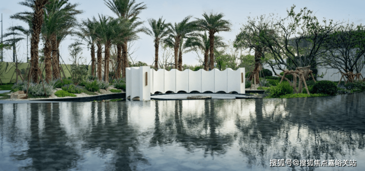 实景呈现的岛屿水院,作为保利天奕五座全球大师花园之一,在 银海枣树阵 、 下沉式庭院 、 镜面池畔卡座 的呼应中,成为未来居者沉浸自然的惬意之地。温柔闲适的 落日廊吧 ,犹如身处海岛之畔,感受蓝调时刻的优雅情调。