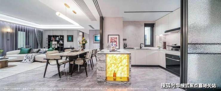 5. 整体采用了海派的装修风格,例如更耗时更费钱的带弧度的半圆形吊顶!以及当大部分项目还在用长虹玻璃时, 招商臻境在厨房的三轨道移门处使用了水波纹玻璃,更具奢华感!这样的细节上次还是在看 3000万级别的豪宅时才看到!