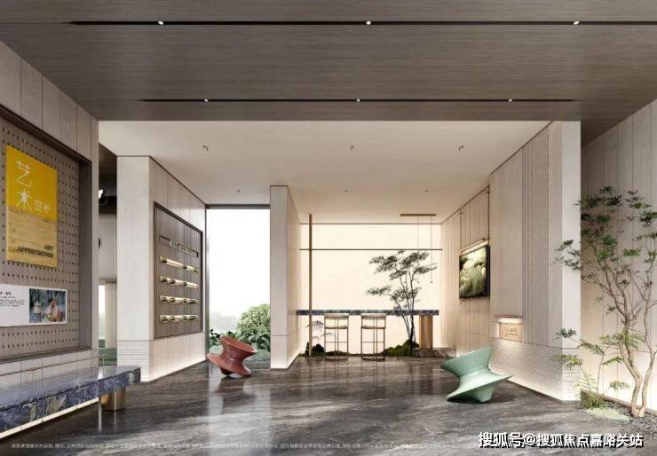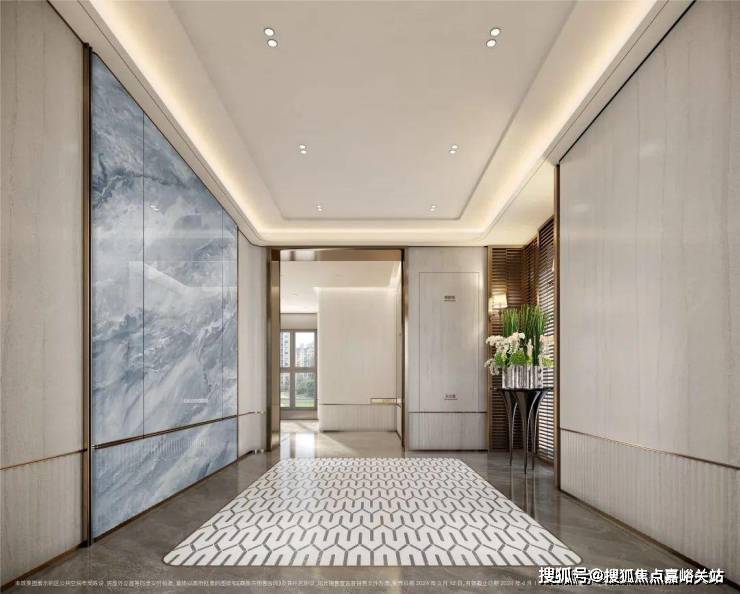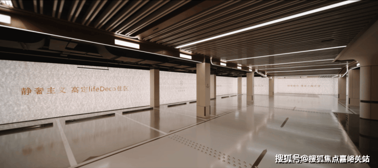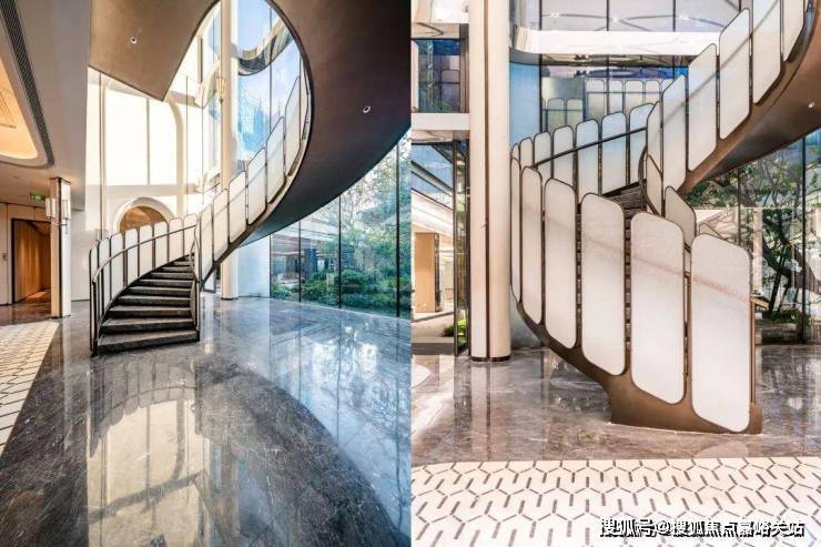 过去在豪宅项目才能看到的类似于“星空顶”地下车库坡道,招商臻境使用了看来 更加高级的香槟金色吊顶,并加上穹顶闪耀的“追光”坡道!精装的地下大堂,配置了 自然的采光井以及专属等候区,如同高级酒店的首层大堂,极尽礼宾仪式! 精装地上大堂,地面的石材拼花造型,墙面的石材背景,将静奢海派的艺术展现的淋漓尽致!