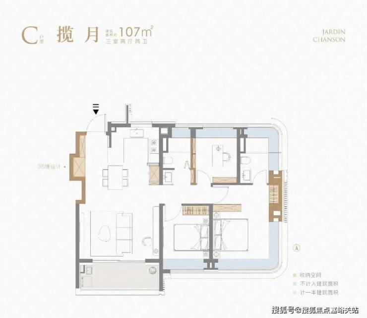 不夸张的讲,这个建面约107㎡刷新了我对百平三房的新认知,据悉该户型或将申请专利,我认为实至名归!
