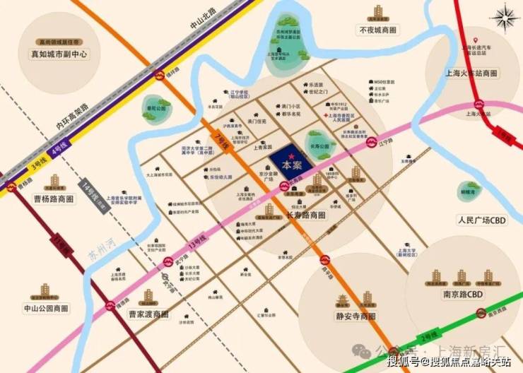 北靠苏州河沿岸,南靠南京路CBD和“梅--恒--泰”繁华闹市,西邻静安寺、曹家渡、中山公园三大成熟商圈,东靠上海火车站和不夜城商圈,国际商业交流合作发达,是商业成功人士的理想选择地。楼下就是4万方长寿主题公园,1公里苏州河梦清园环保主题公园;3公里左右多个三甲医院:上海华东医院、同济医院、普陀人民医院等;居于此,不仅可以享有最优质的的医疗资源呵护健康,更可在鲜氧中获得健康保障。