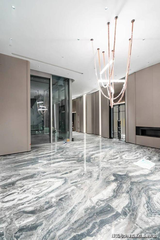 走进实体楼栋,首先就是映入眼帘的这约6米左右层高的门厅挑高大堂。
