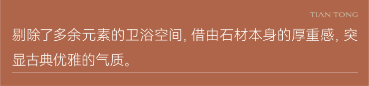 秩序,是主卫浴空间布局的重点。两个独立台盆相对而立,分属男女主人,营造出从容自如的使用体验。大面积运用黑白撞色大理石,让空间的秩序美与材质的自然美融合,颇具观赏韵味。
