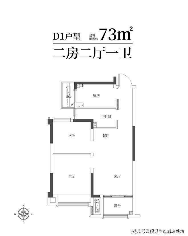 建筑面积约73㎡舒适两房一卫,年轻家庭的向往