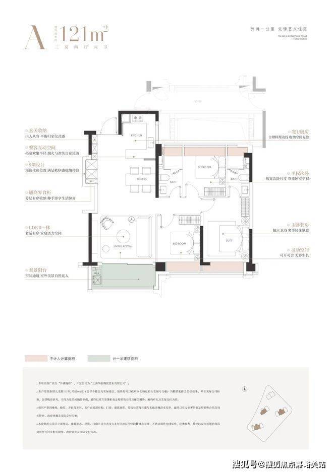 建面约121㎡三房