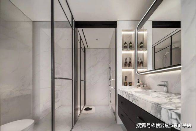 酒店式四分离公卫:实现独立洗漱台、卫生间、淋浴间、洗衣区互不打扰,将酒店化体验引入住宅,早高峰时期也能做到出入有序。
