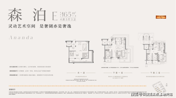 建面约165㎡下叠 | 通透采光的垂直空间革命 下叠 预计使用率最高约148%、三向采光地下、LDBKG双入户流线、南北通透主卧套房 (非得房率,最终房屋得房率以实测报告为准)
