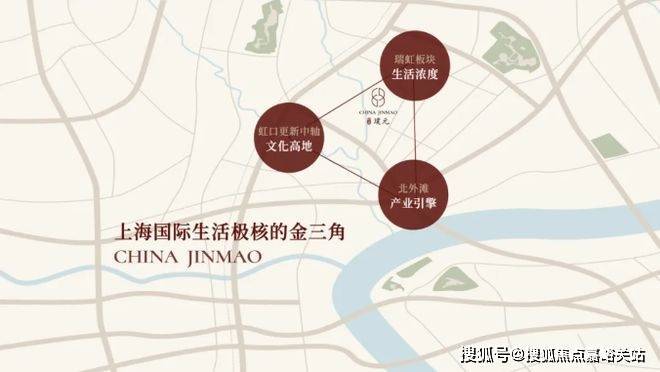 金茂璞元落子上海虹口区瑞虹新城核心区,精准占位外滩-北外滩-陆家嘴黄金三角辐射圈,距黄浦江仅约八佰米,是瑞虹新城30年城市更新的收官巅峰之作,兼具成熟配套与发展红利双重加持。