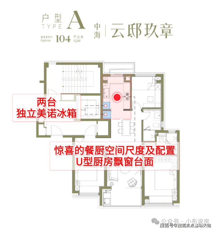 在餐厨空间的细节上项目把控到位,利用厨房飘窗打造了台面,形成利用率更高的U字型设计,并且预留了2个冰箱点位,预计配置2台独立美诺冰箱。1台可以储存新鲜蔬果肉蛋,另1台可以储存奶酒饮料零食,分类更明确,容量更大胆!