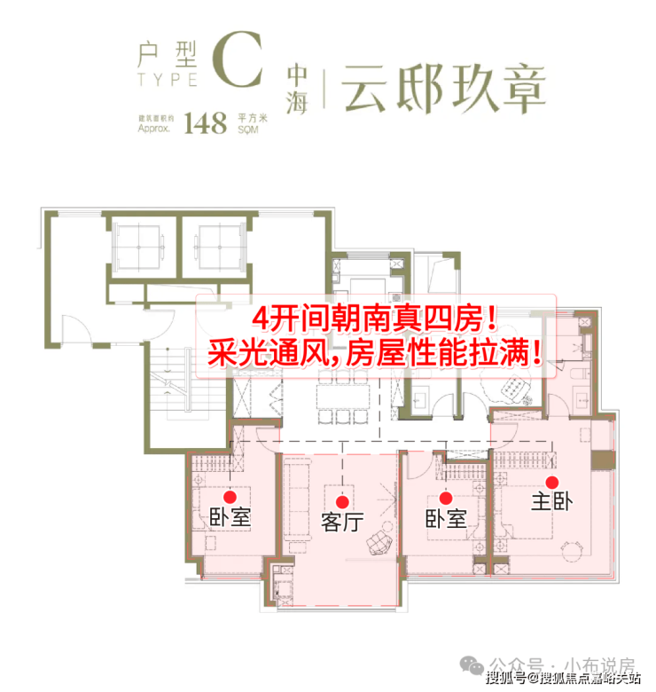 综上所述,中海·云邸玖章的户型在成功前作的基础上又做了大量创新,走在了时代的前列,尤其是建面约148㎡户型在实现真四房的同时,尺度感也能媲美160㎡以上同类竞品,性价比与舒适度兼具,值得关注!